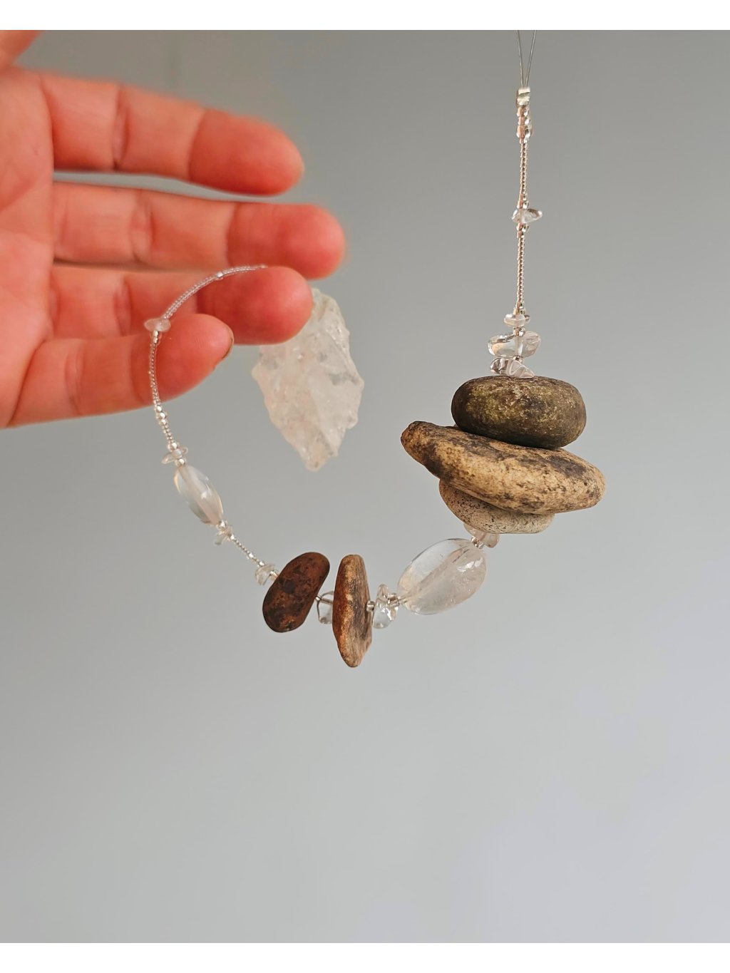 Závěsná kamenná kompozice s horským křišťálem – Ručně tvořený přírodní bytový šperk z Ohře