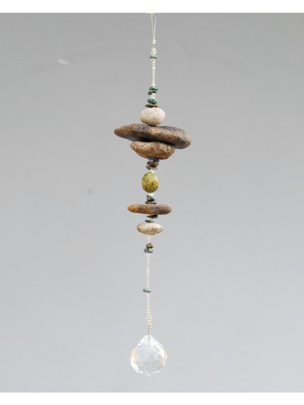 Feng shui světýlko s říčními oblázky z Ohře a africkým tyrkysem. Ručně vytvořený autorský bytový šperk. Český výrobek.