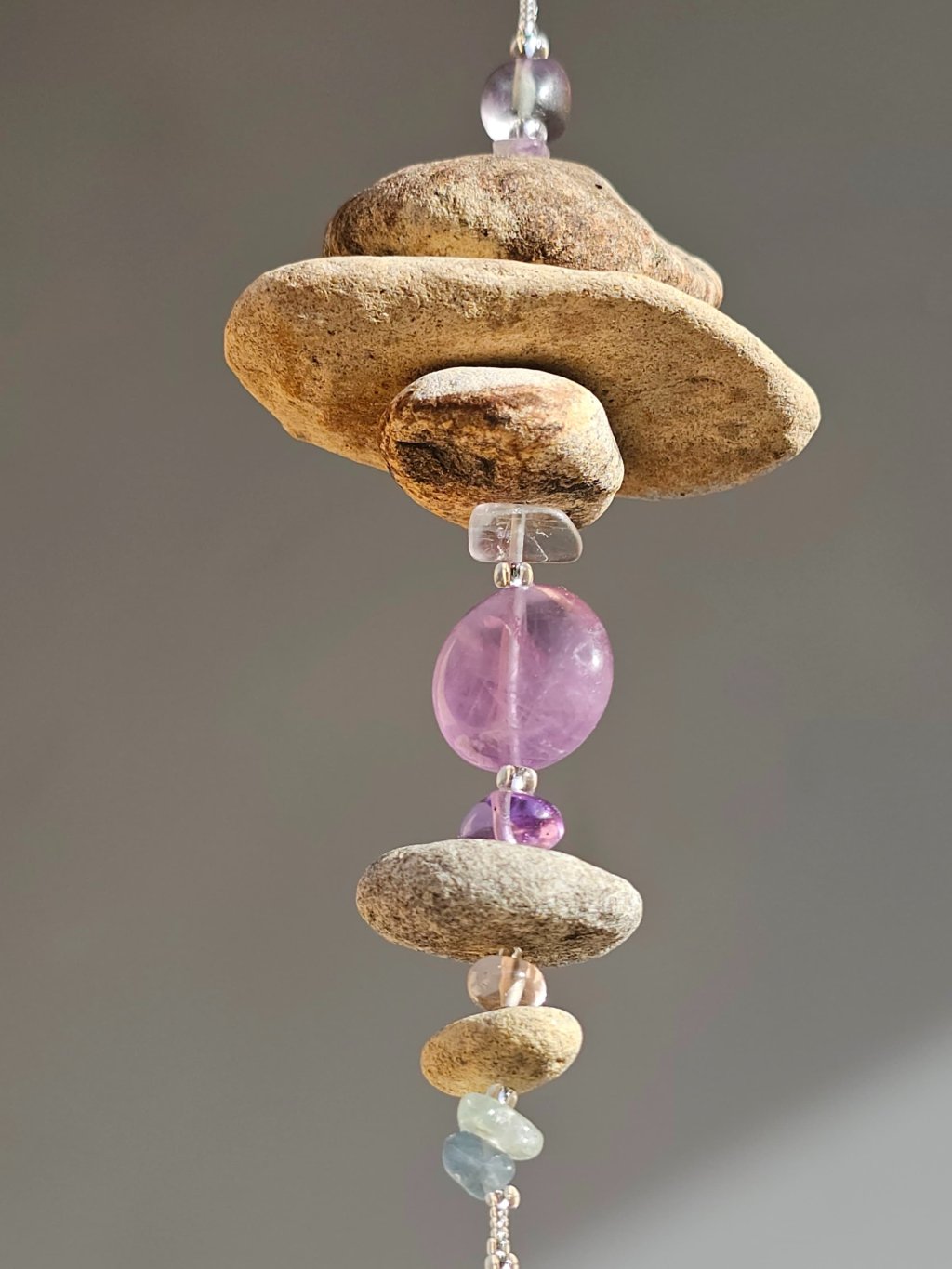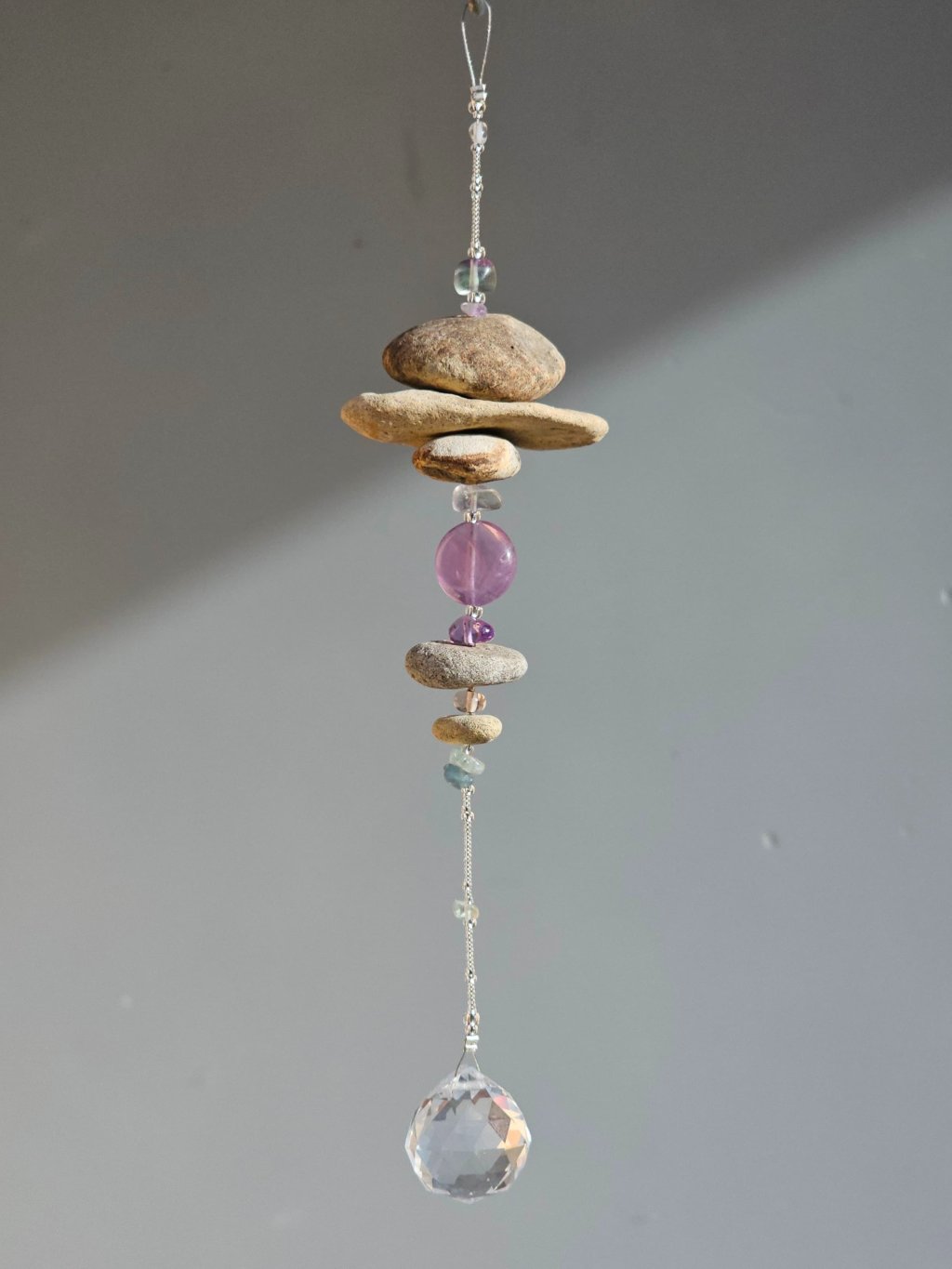Tyto nenápadné pamětníky pradávného českého moře kombinuji s kvalitním českým rokajlem Preciosa, přírodními polodrahokamy a skleněnými broušenými lapači slunce, které v duchu umění Feng shui podporují v prostoru tok chi. Při průchodu světla vám roztančí po místnosti stovky duhových světélek.