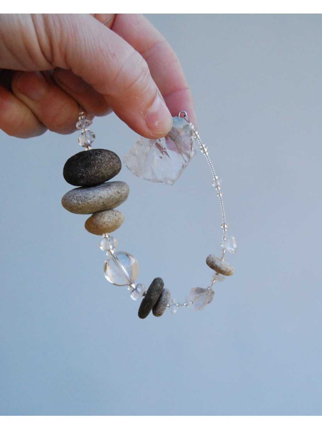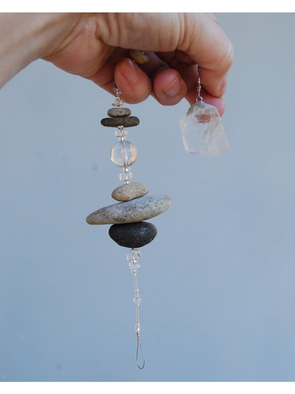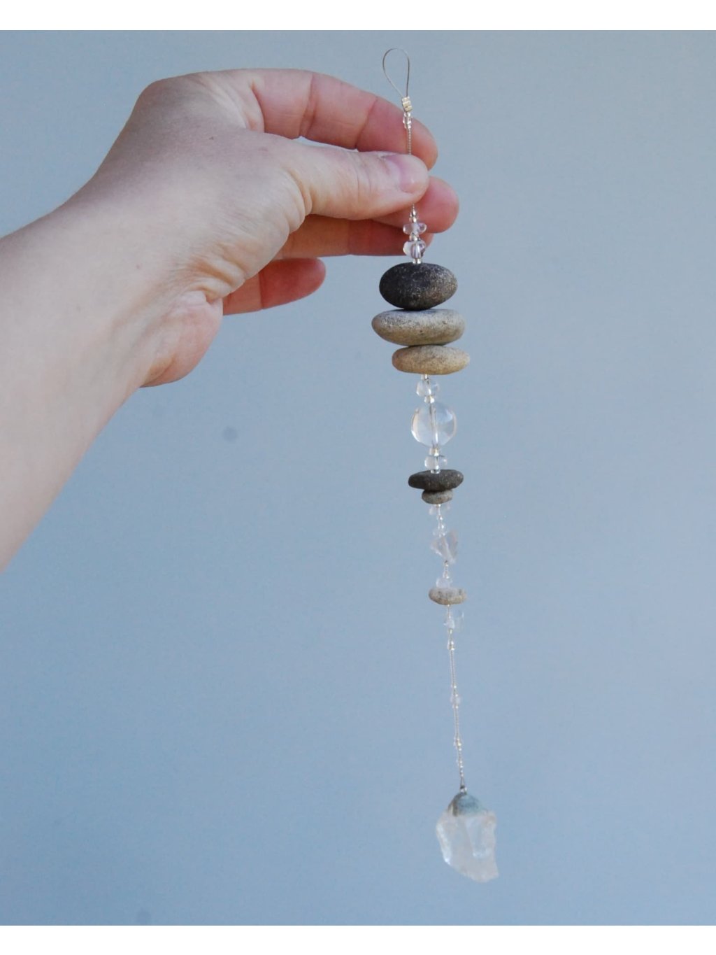 Tyto kamenné závěsné kompozice pro vás tvořím z říčních kamenů, které sbírám v naší milé Ohři nebo na jejích přírodních plážích. Malé oblázky kombinuji s českým rokajlem a vzácnými minerály.