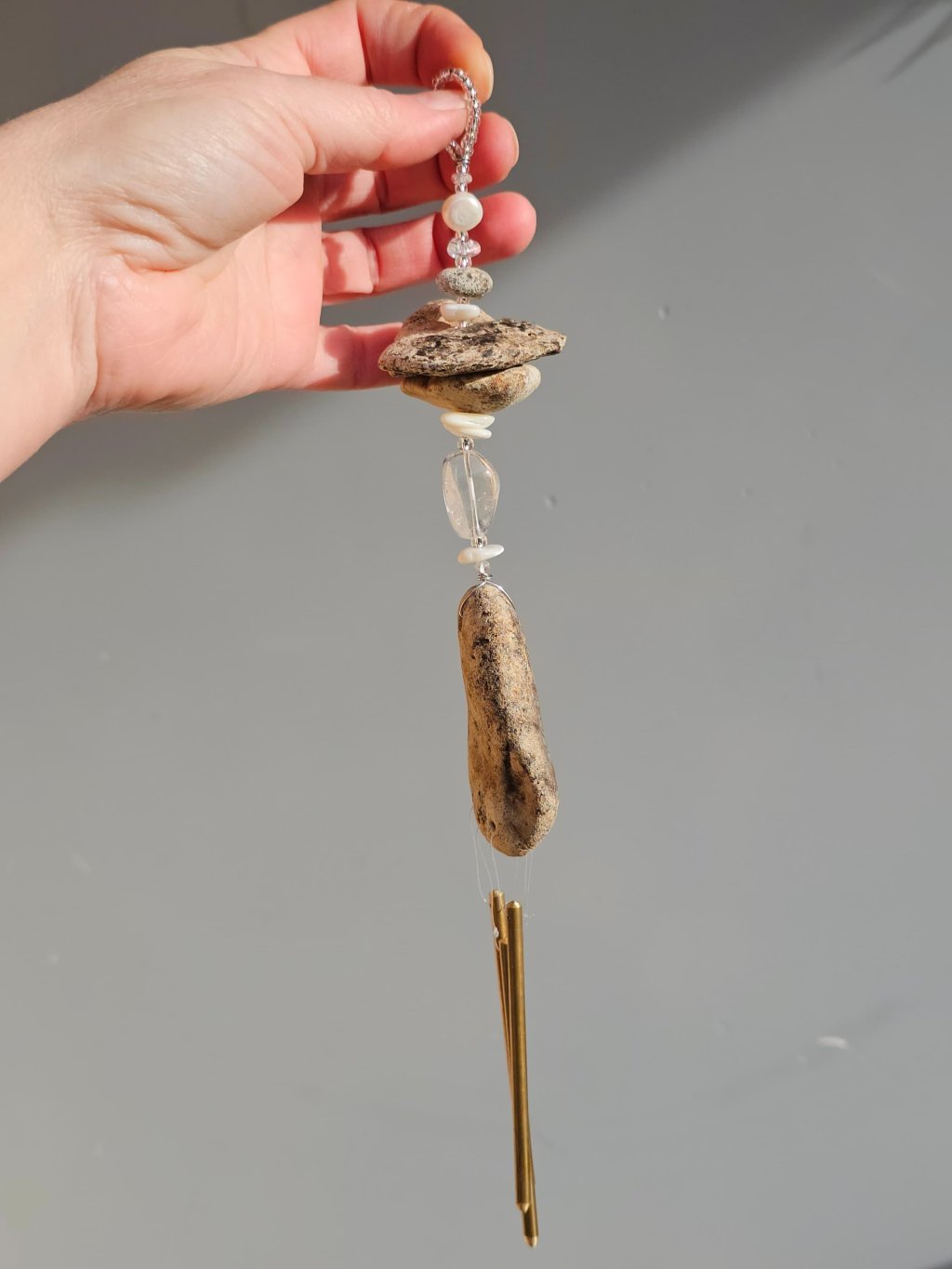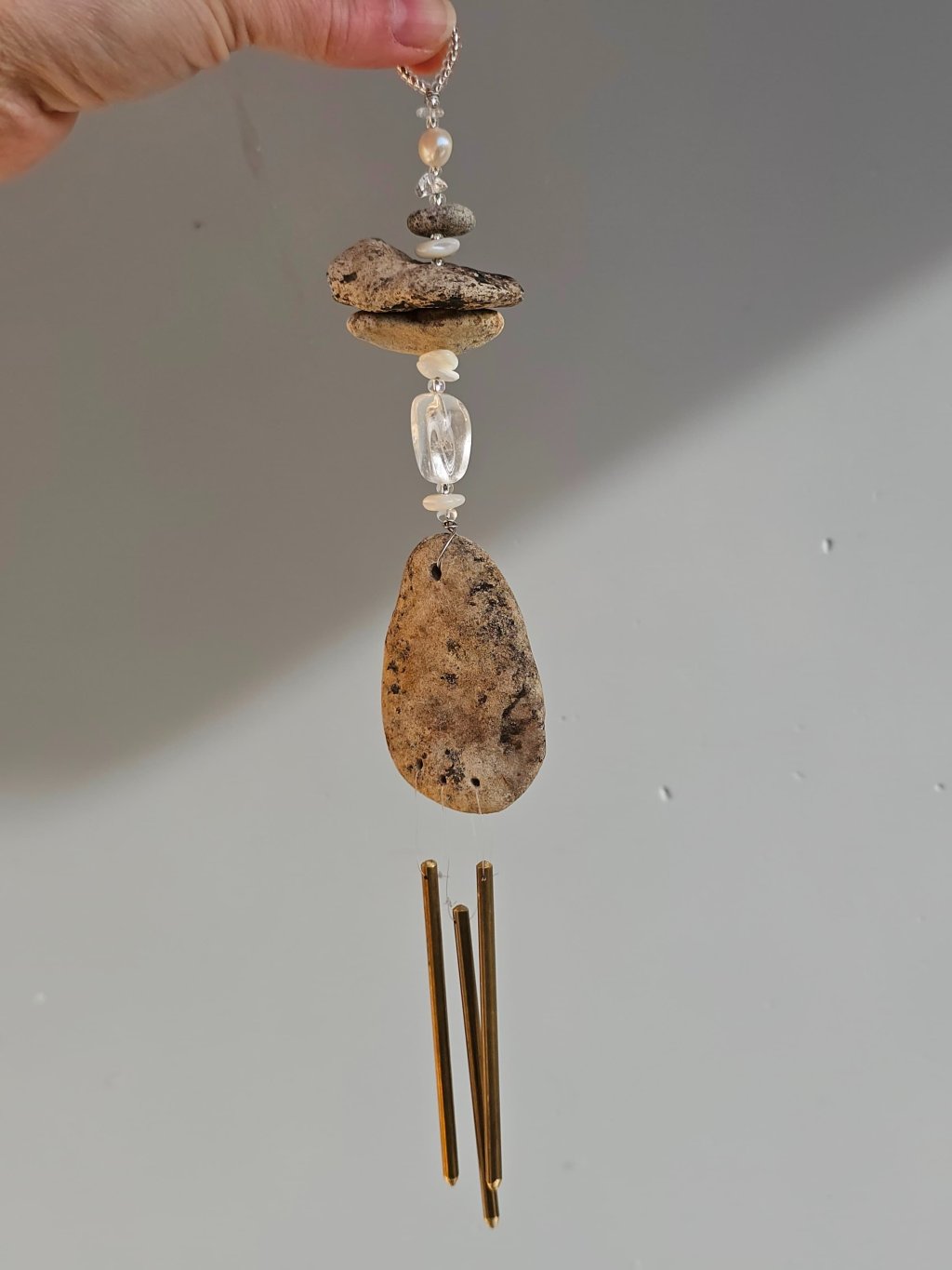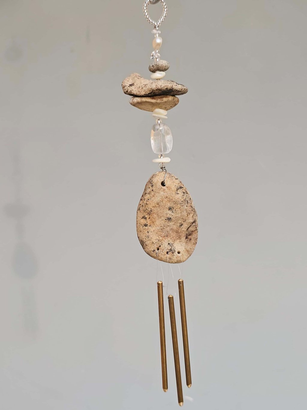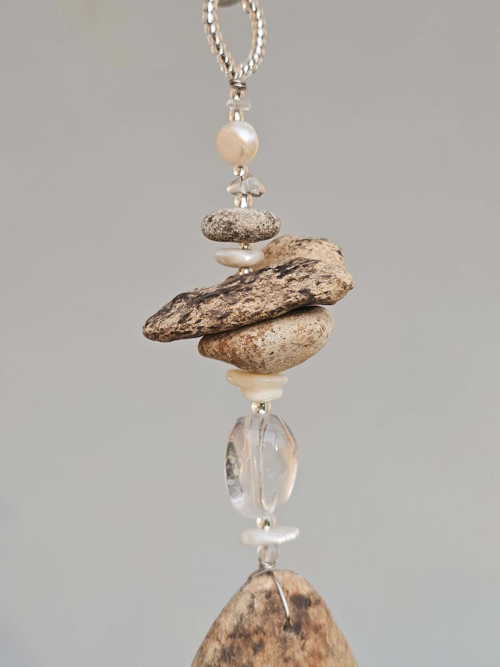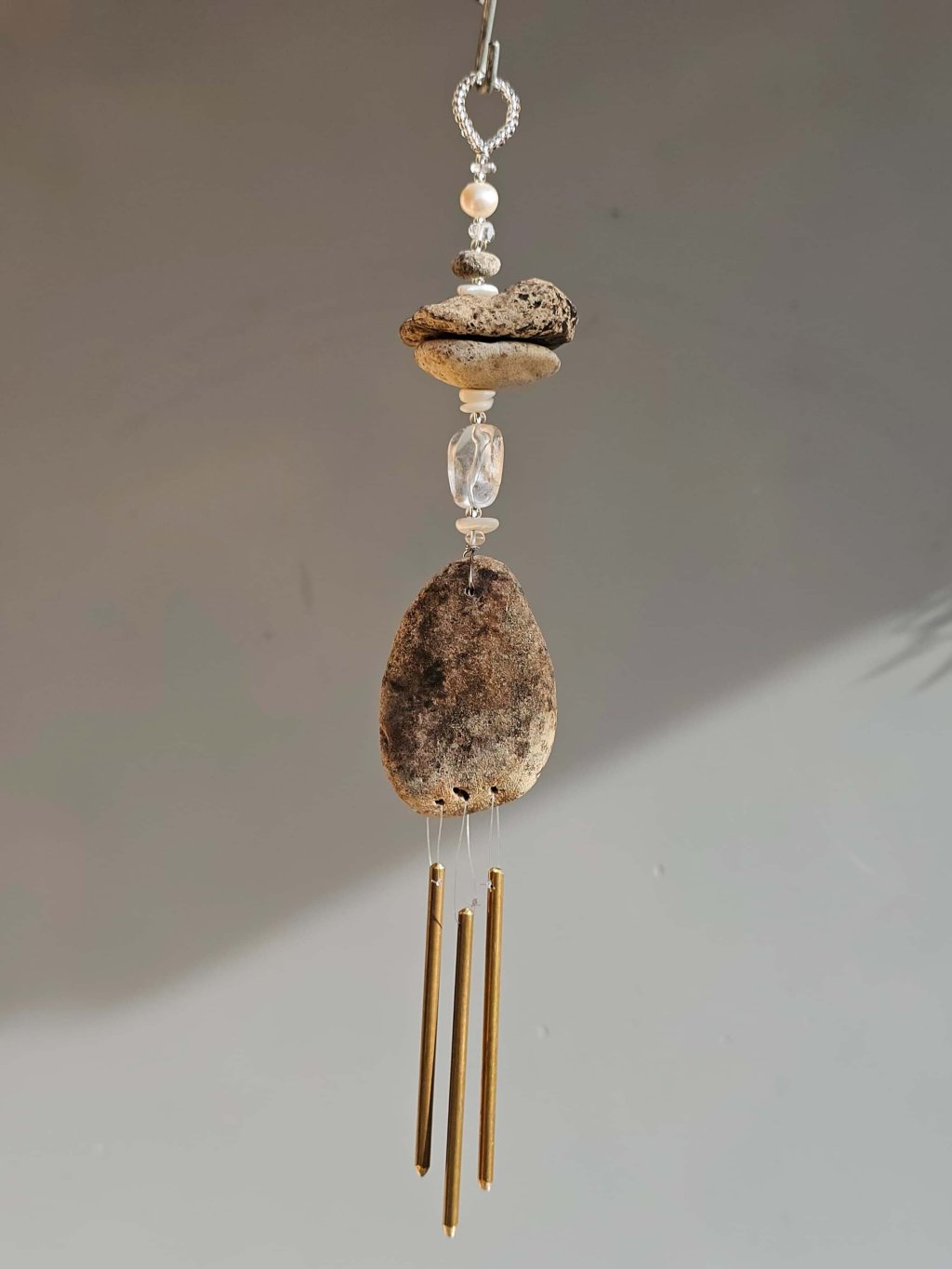 - Váha: Kamínky z Ohře umístěné v kompozicích jsou sedimenty, takže zvonkohry jsou překvapivě lehoučké. Při umístění venku chraňte před vlhkem a mrazem.