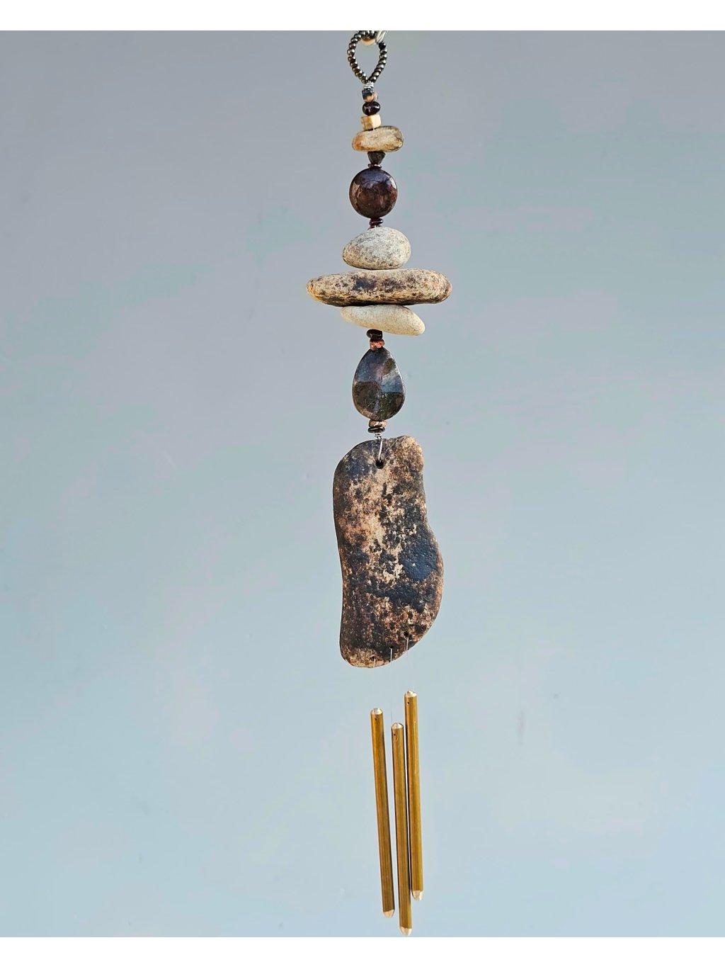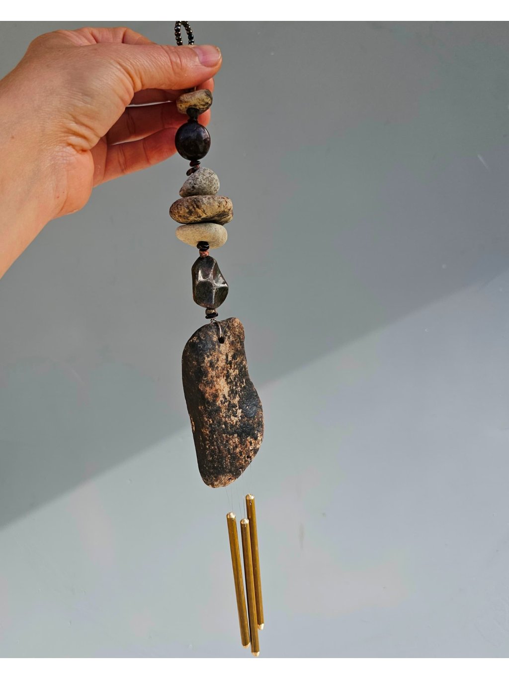 - Váha: Kamínky z Ohře umístěné v kompozicích jsou sedimenty, takže zvonkohry jsou překvapivě lehoučké. Při umístění venku chraňte před vlhkem a mrazem.