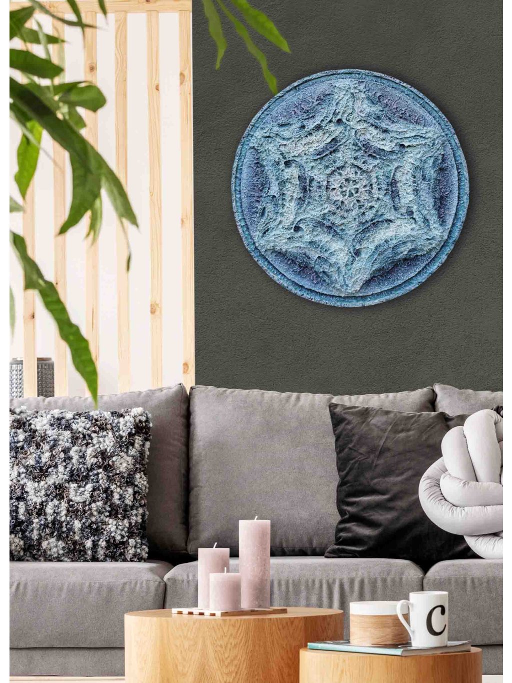 Reliéfní obrazy v tomto cyklu vyjadřují můj obdiv k přirozené kráse a dokonalosti přírodních forem. Pracuji s otisky detailů přírodnin a vytvářím kompozice založené na rytmu, fraktální logice a symetrii. Tyto formy uspořádávám do harmonických celků v rámci symbolického kruhu, kde se často prolínají protiklady jako řád a chaos, pohyb a klid, čas a bezčasí.