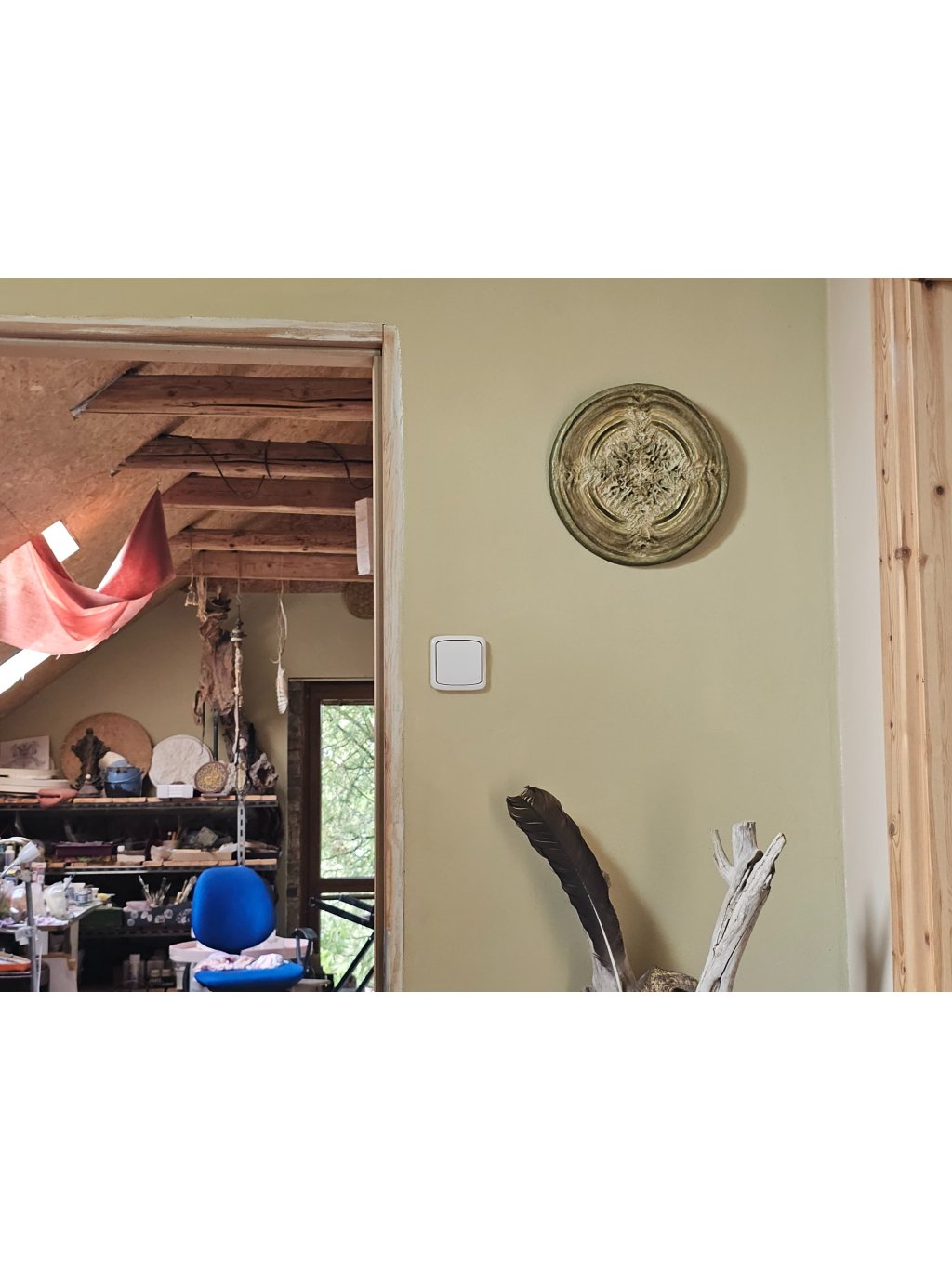 K technice: Základem každého mého reliéfního obrazu je detail – drobný záznam přírody, který mě nějakým způsobem osloví. Může to být textura kusu říčního dřeva, otisk kůry nebo jiná křehká vzpomínka na živý svět. Pomocí formovacích hmot tento detail zachytím a dále s ním pracuji, dokud necítím, že ladí s mou vnitřní krajinou. Tento fragment pak rytmicky rozmnožím a vznikne symetrická kompozice, které dávám finální podobu intuitivními zásahy – hmota je ubírána i přidávána, plasticky modelována, gravírována či vrstvena texturní malbou. Na kruhové matrici, která tímto procesem vznikne, vytvořím finální formu, z níž se rodí jednotlivé obrazy ze speciální polymerační sádry a kompozitních materiálů, aby byla zajištěna váhová lehkost. Konečnou podobu obrazů pak dotvářím malbou akrylovými barvami či je nechávám „nahé“, v něžnosti jejich základní bílé podoby, kterou tónuje pouze samo světlo.