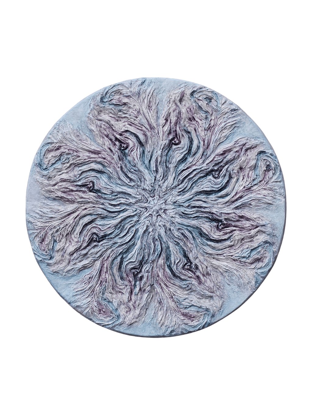 K technice: Základem každého mého reliéfního obrazu je detail – drobný záznam přírody, který mě nějakým způsobem osloví. Může to být textura kusu říčního dřeva, otisk kůry nebo jiná křehká vzpomínka na živý svět. Pomocí formovacích hmot tento detail zachytím a dále s ním pracuji, dokud necítím, že ladí s mou vnitřní krajinou. Tento fragment pak rytmicky rozmnožím a vznikne symetrická kompozice, které dávám finální podobu intuitivními zásahy – hmota je ubírána i přidávána, plasticky modelována, gravírována či vrstvena texturní malbou. Na kruhové matrici, která tímto procesem vznikne, vytvořím finální formu, z níž se rodí jednotlivé obrazy ze speciální polymerační sádry a kompozitních materiálů, aby byla zajištěna váhová lehkost. Konečnou podobu obrazů pak dotvářím malbou akrylovými barvami či je nechávám „nahé“, v něžnosti jejich základní bílé podoby, kterou tónuje pouze samo světlo.